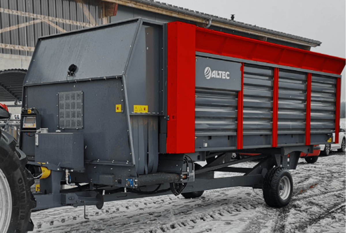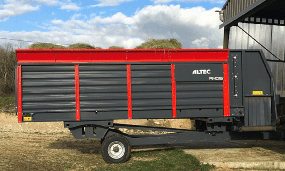 Avec système de déchargement latéral avec rouleaux de dosage, tapis de déchargement bilatéral avant, et sur demande, déchargement bilatéral arrière, timon bas central. Ouverture porte arrière hydraulique et le tapis de tassement et de déchargement, actionné par un moteur hydraulique, permet de travailler dans les deux sens pour garantir une alimentation régulière du produit aux deux systèmes de déchargement. Les mouvements hydrauliques sont commandés directement depuis le tracteur par des flexibles de commande dans la cabine. Ces remorques ont des capacités allant de 5,5 m³ à 16 m³.