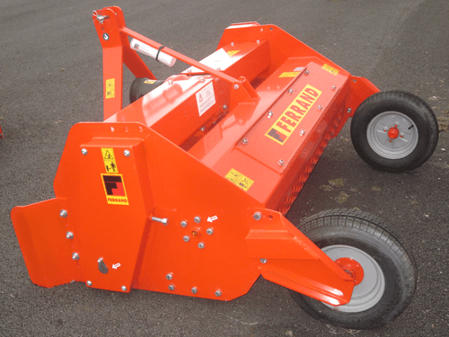 - 2 - Un modèle de broyeur hors sol TSFH, existe avec une chambre de broyage fermée (broyage très fin). Boitier 3 sorties, entraînement pick-up par chaine, sécurité à friction sur demi arbre du pick-up, grille d’éjection arrière, trappe de visite et 2 roues arrières.