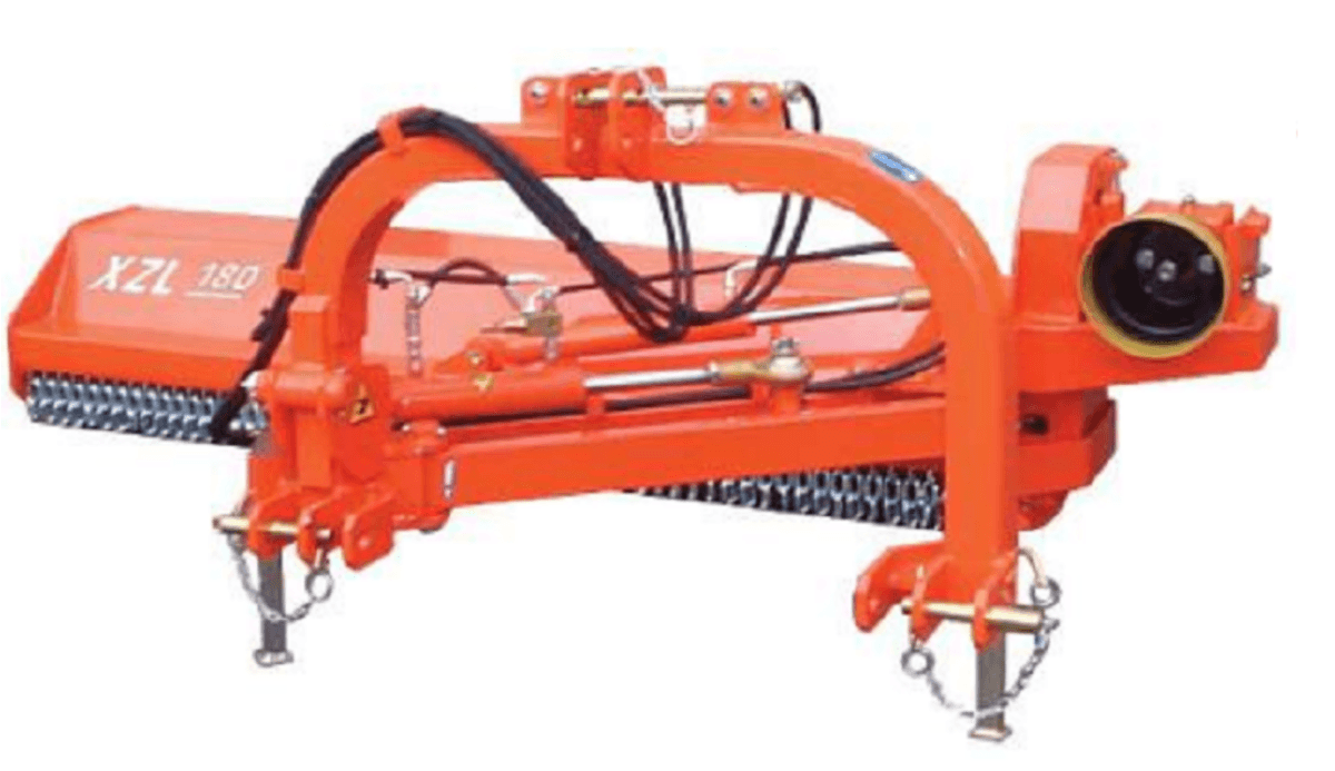 . Attelage 3 points cat. 1, boîtier fonte 540 tours roue libre, patins latéraux réglables, rouleau arrière réglable, orientation hydraulique tête de broyage +90° – 50°, denture Y montée sur boulons, cardan simple homocinétique, sécurité mécanique sur l’attelage,