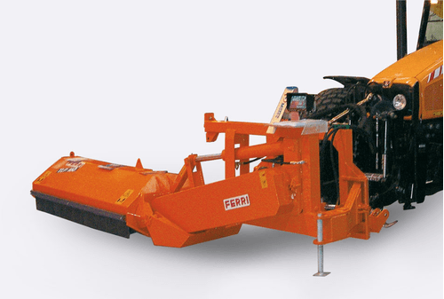 . Attelage 3 points cat. 2, boîtier fonte 540 tours avec roue libre, orientation hydraulique de la tête de broyage +90° -50°,denture marteaux montée sur boulon, déport 55 cm de l’axe du tracteur, rouleau arrière réglable, tendeur automatique de courroies, graissage centralisé, patins latéraux réglables, sécurité mécanique sur l’attelage, accumulateur oléopneumatique (boule d’azote), 4 courroies, cardan simple homocinétique