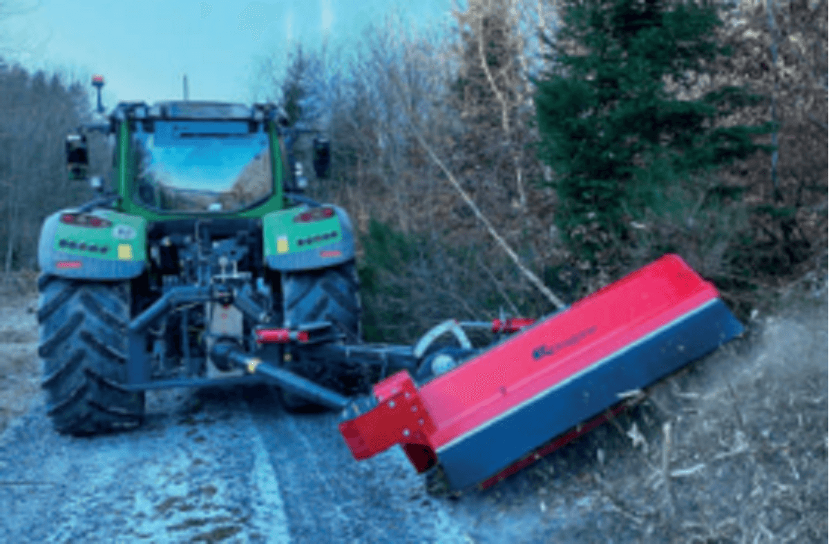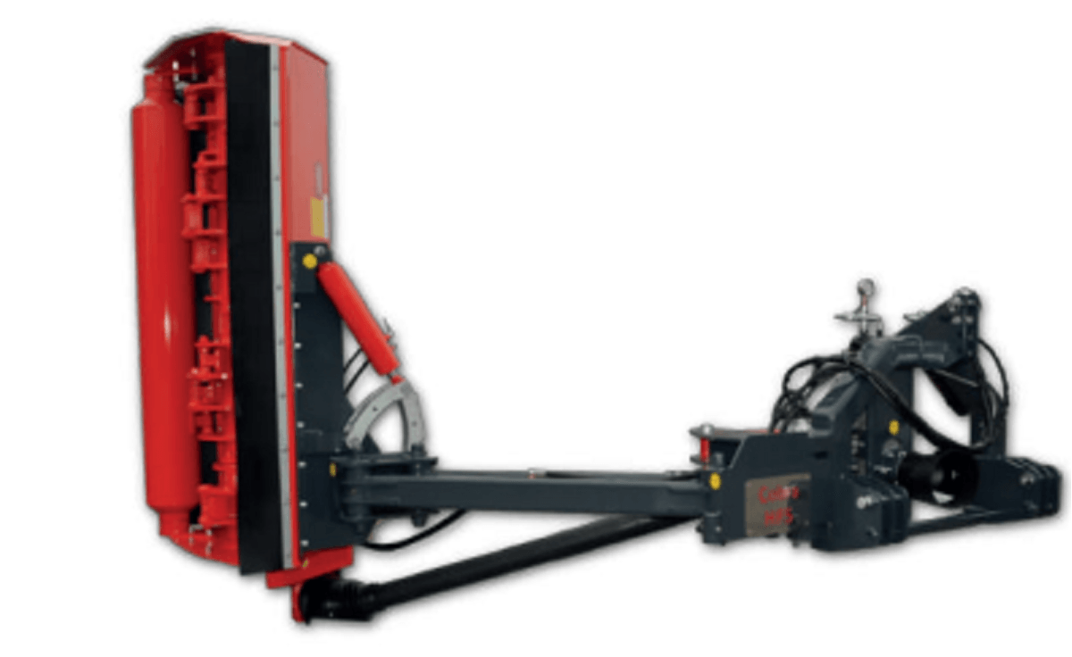 . Attelage 3 points cat. 2, boîtier fonte 540 tours avec roue libre, orientation hydraulique de la tête de broyage +90° -50°,denture marteaux montée sur boulon, déport 55 cm de l’axe du tracteur, rouleau arrière réglable, tendeur automatique de courroies, graissage centralisé, patins latéraux réglables, sécurité mécanique sur l’attelage, accumulateur oléopneumatique (boule d’azote), 4 courroies, cardan simple homocinétique