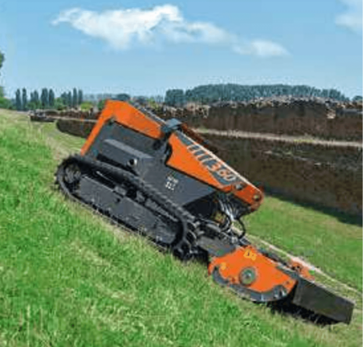 Polyvalent avec l’utilisation d’équipements conçus pour cet outil, il permet aussi l’entretien des espaces verts en général, les routes, etc… avec divers équipements et accessoires interchangeables tels que fraise à neige, lame frontale à neige, balayeuse, godet… Idéal pour l’entretien à distance des berges et des talus, de zones délimitées, des espaces communaux. Un écran de contrôle permet d’identifier un diagnostic d’un éventuel dysfonctionnement. Possibilité d’augmenter la largeur du châssis de 132 à 167 cm pour hausser la sécurité lors de conditions de travail difficiles.