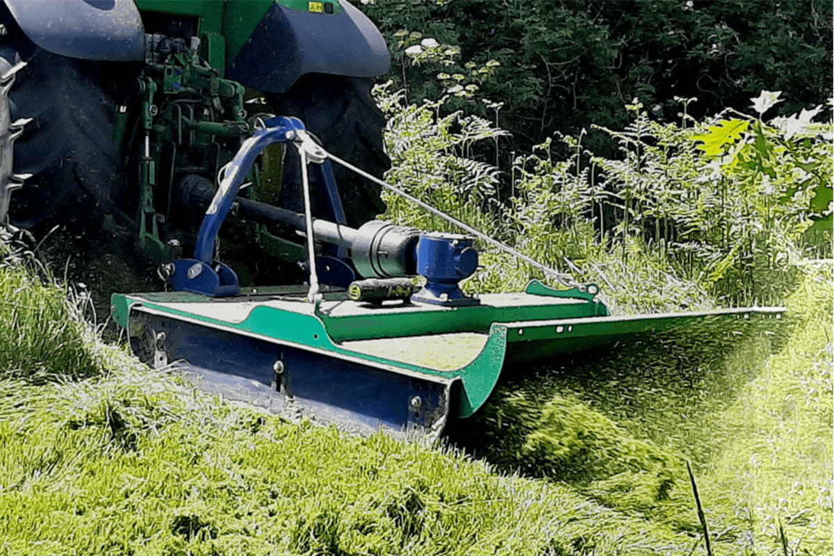 Broyage à droite : attelage 3 points arrière, 3 points avant ou chargeur. Broyage à gauche : attelage 3 points avant et télescopique. Rotor avec 3 couteaux escamotables. Couteaux 3 positions. Vitesse de rotation du rotor 1 900 tr/mn à 50 L/mn. Coupelle d'appui Ø 700 mm libre en rotation avec semelle HARDOX et inclinaison pour un meilleur suivi du sol. Effacement par vérin et boule d'azote réglable par pompe à main. Largeur de travail : 1 m. Fabriqué en France