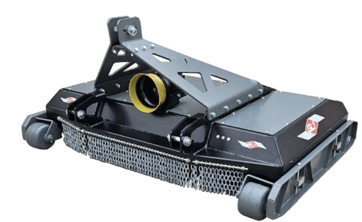 - Gyrobroyeur YRO et YROMAX idéal pour les espaces verts, parcs et jardin et les espaces sportifs. Pour tracteur de 70 à 100 cv avec attelage à 3 points cat II, boîtier avec roue libre avec PDF à 540 tr/min, régime opérationnel de la PDF à 370 tr/min, transmission rotors par courroies crantées avec tendeur de courroie automatique, rotors avec lames en acier au bore et mobiles, patins latéraux et roues réglables simultanément par vis d'enregistrement, rouleau arrière avec roulements sans engraissage, chaines avant antiprojection, caisson avec hauteur du sol de 22 CM, YROMAX avec flancs rabattables, protections de sécurité. 3 rotors et 6 lames