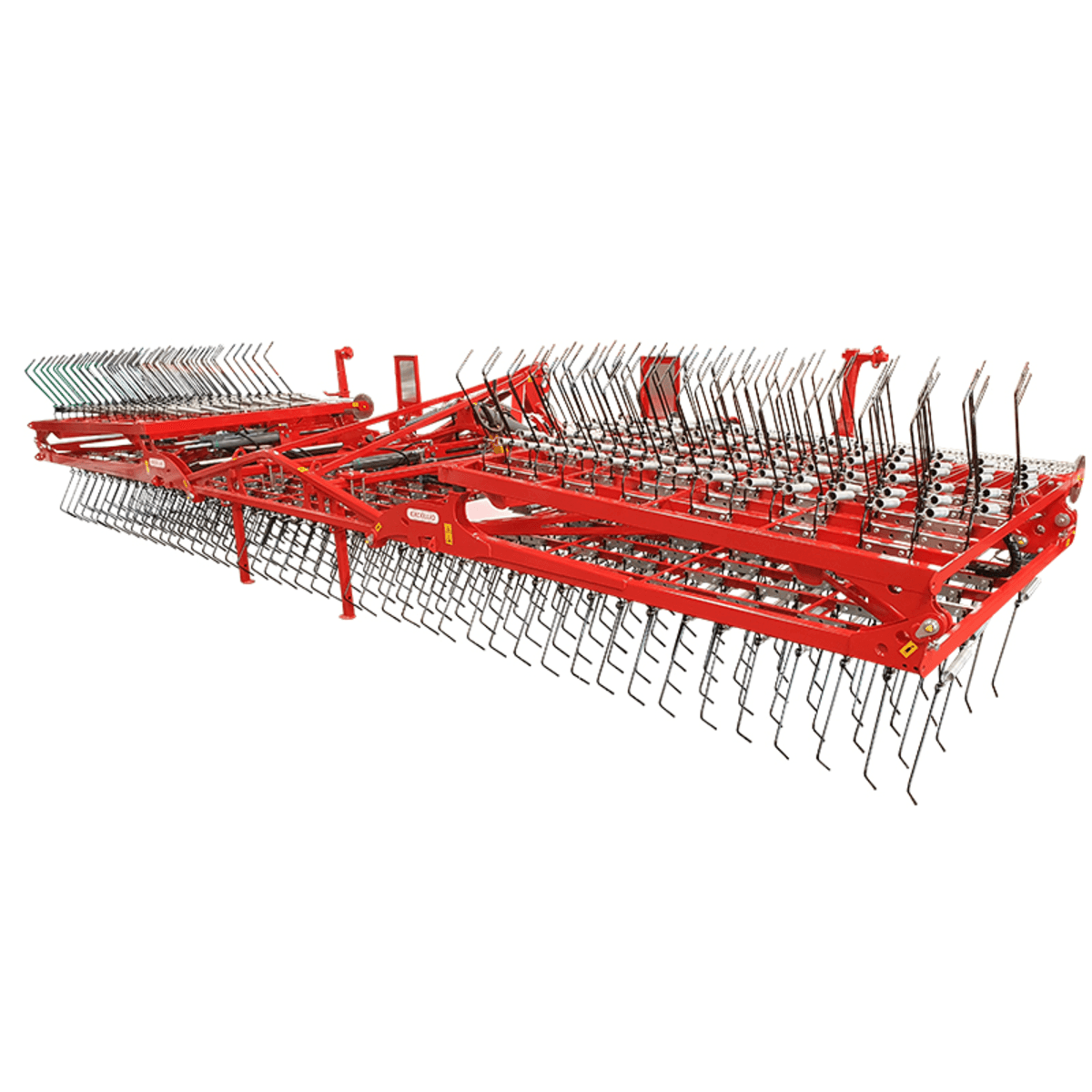 - 1 - RASETTES ET REGENERATEURS DES PRES : châssis entièrement galvanisé à chaud, assemblage mécanosoudé de tôles haute résistance pliées à froid, repliable grâce à un vérin hydraulique double effet, hauteur des dents étrilles réglables, et différents équipements de série en fonction du modèle.