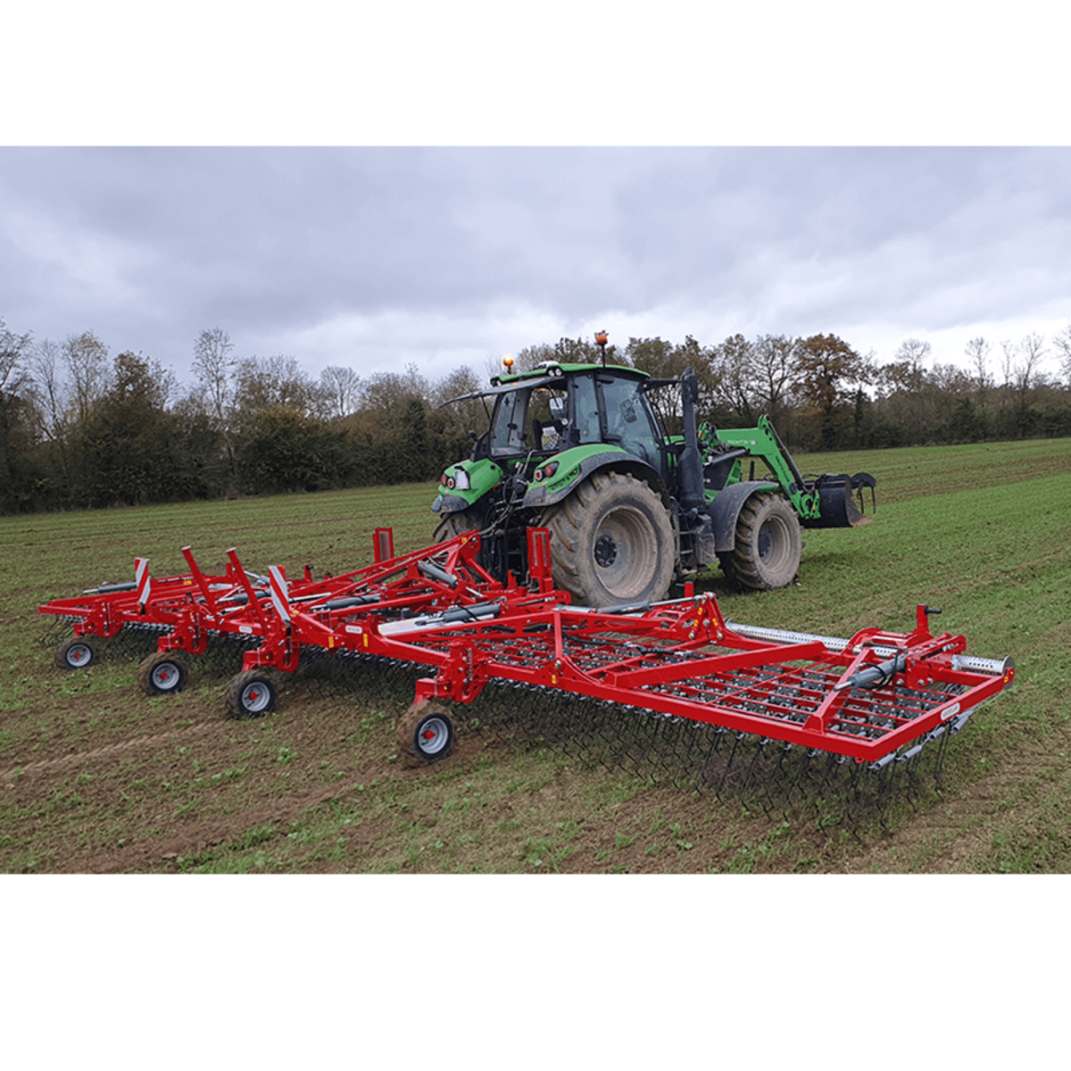 Jusqu’à 6 kg de pression à la pointe. Dents Ø 8 mm en acier trempé. Grand dégagement sous bâti 520 mm. S’adapte au terrain avec des roues de contrôle de profondeur et débattement angulaire des compartiments.
