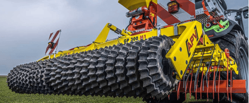 5 - Rouleau de prairie GW pour les grandes cultures. Combinaison possible avec une herse frontale ou un semoir APV (PS ou MD). Rouleaux Cambridge 390 mm ou 530 mm ou rouleau denté 410 mm créent une structure de lit de semences friable et de bonne qualité Compartiment à outils intégré dans le cadre