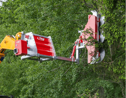 Tête de scie 700 mm. Hauteur de coupe 2,10 m. Ø de coupe jusqu’à 280 mm. Bras de déport 1,20 m. Contrepoids 210 kg, attelage EURO. Autres attelages en option.