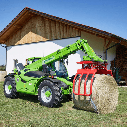 La structure compacte et adaptée permet de décharger et d'empiler les balles rondes sans les endommager. La forme mince spéciale des bras de préhension évite l'endommagement du film.