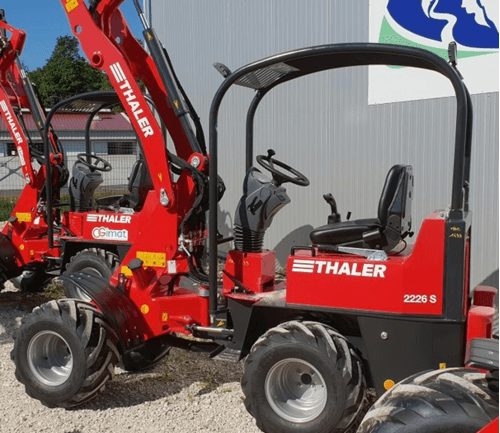 Une gamme complète de 19 à 72 cv. Bras standard télescopique, hauteur de levage de 2,5 à 4 m. Attelage euro. Hydrostatique Bosch Rexroth. Moteur Yanmar. Machine très bien équilibrée. Très bon rayon de braquage. Réglage hydraulique de la hauteur de l'arceau en option pour circuler dans les bâtiments bas.