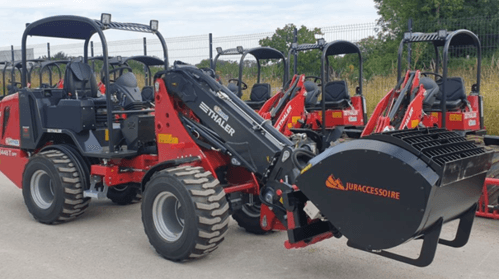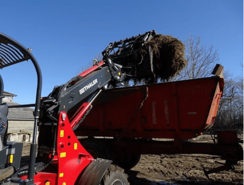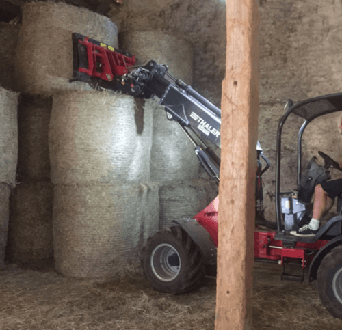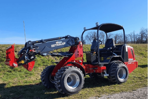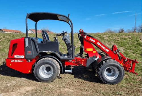 Une gamme complète de 19 à 72 cv. Bras standard télescopique, hauteur de levage de 2,5 à 4 m. Attelage euro. Hydrostatique Bosch Rexroth. Moteur Yanmar. Machine très bien équilibrée. Très bon rayon de braquage. Réglage hydraulique de la hauteur de l'arceau en option pour circuler dans les bâtiments bas.