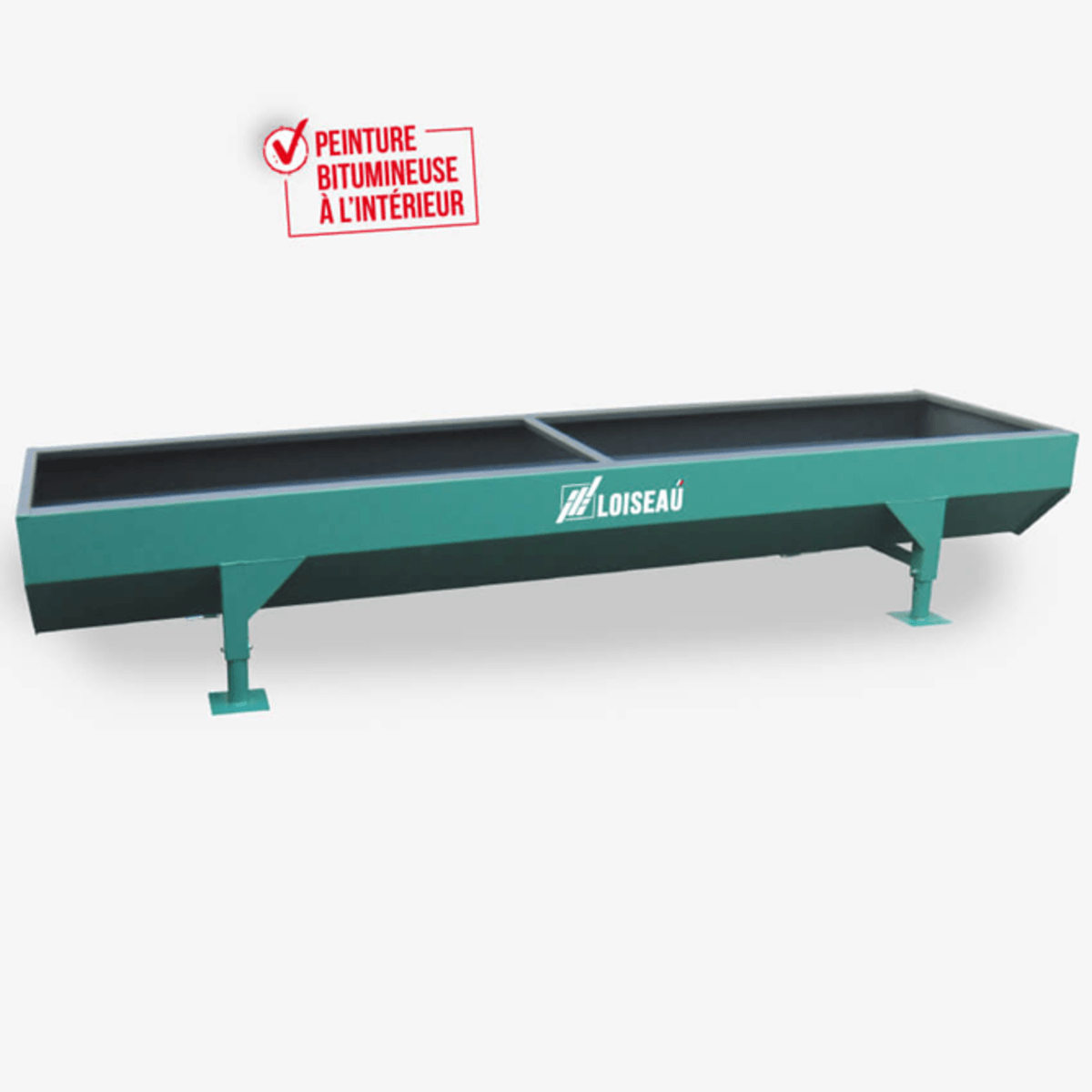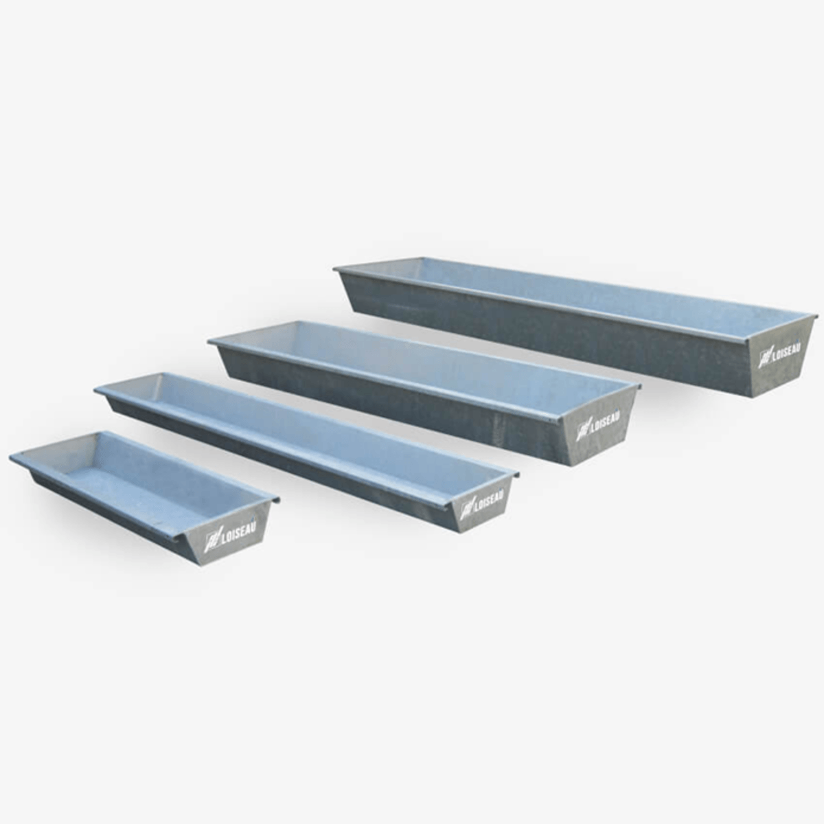 Une large gamme d’auges pour bovins, caprins, porcs peintes ou galvanisées selon les modèles. Ces auges existent sur pieds fixes, pieds réglables, sur roues. Longueur de 3 à 6 m, tôle de 1,5 mm à 3 mm et largeur extérieure jusqu’à 80 cm en fonction des modèles.