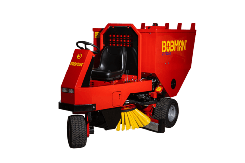 Moteur diesel Kubota 14cv, entrainement par les 2 roues arrière, dirigeable par la mono roue avant. Phare de travail, racleur relevable 1.2m placé sous le véhicule, cuve arrière de 900L avec convoyeur droite/gauche à vitesse variable. Brosse de balayage 850mm repliable. Disponible selon point de vente.