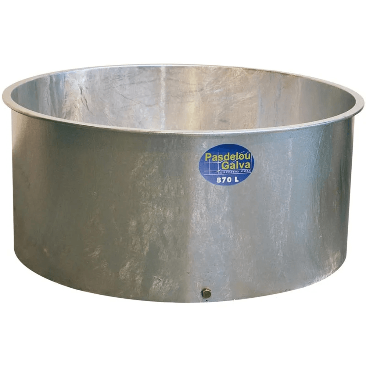 Sur les modèles circulaires, fond plat nervuré pour éviter la déformation, bouchon passe paroi en laiton et pourtour d’une épaisseur de 2 mm. Hauteur de 0,31 m (modèles ovin, bovins) à 0,85 m (modèle spécial chevaux) et 0,75 m pour les modèles rectangulaires. Diamètres des modèles forme rondes de 1,12 m à 1,76 m.