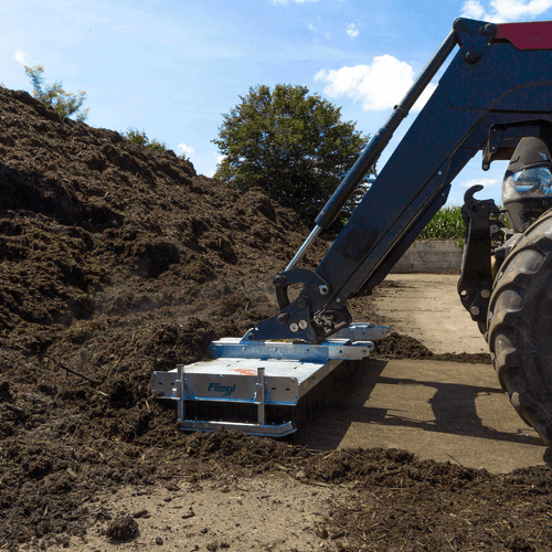 I -La balayeuse NET montage 3 points flottants, pitons cat.II arrière du tracteur, alimentation tracteur 1 DE, béquille de stationnement. Pour le nettoyage des routes, des bâtiments d’élevage, des cours de fermes et des bâtiments industriels.