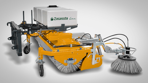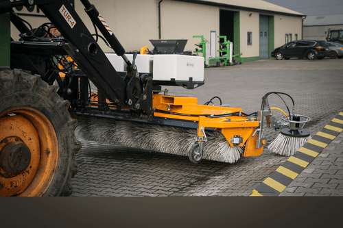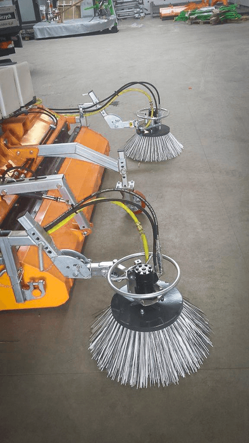 I -La balayeuse NET montage 3 points flottants, pitons cat.II arrière du tracteur, alimentation tracteur 1 DE, béquille de stationnement. Pour le nettoyage des routes, des bâtiments d’élevage, des cours de fermes et des bâtiments industriels.