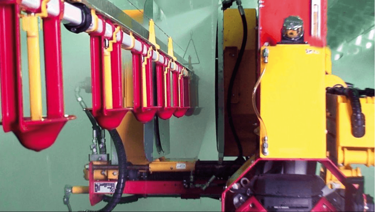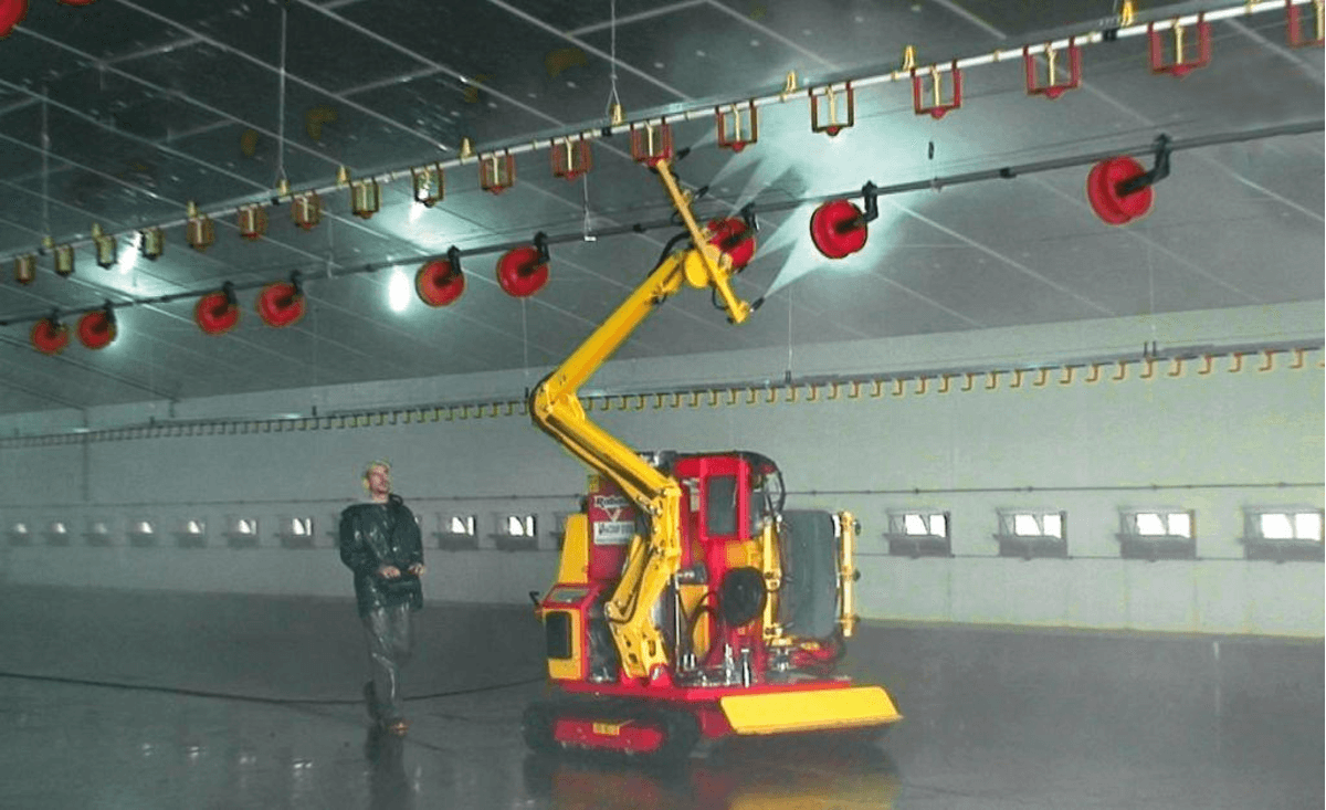 - Une rampe orientable montée sur un bras articulé qui peut atteindre 5 m de haut pour le lavage du plafond et des parois.