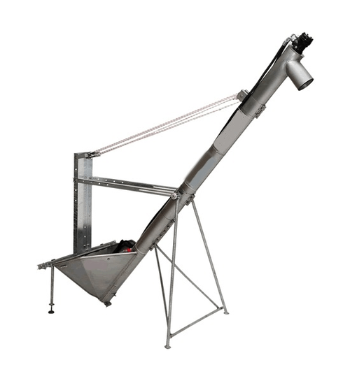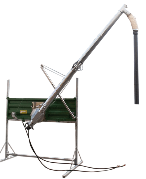 Vis Ø 160 mm à double spire sur le 1er segment permettant un débit très important. Trémie 2,50 m de largeur, réglable en hauteur. Attelage remorque renforcé. Roue jockey. Modèles disponibles en version peinte polymérisée au four ou galvanisée. Autres modèles disponibles en Ø 220 ou 325 mm et longueur 9, 12, 15 et 20 m en entraînement électrique, hydraulique ou par prise de force.