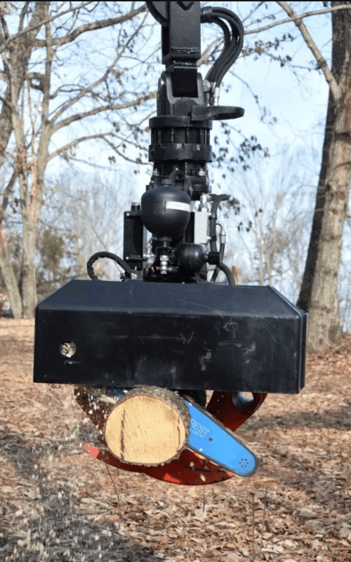 Pour les applications plus complexes, nous proposons le grappin coupeur abatteur pendulaire avec TILT, offrant un diamètre de coupe maximal de 500 mm et une force de 1275 daN, spécialement conçu pour les pelles ou grues, permettant une flexibilité et une polyvalence accrues sur le terrain.