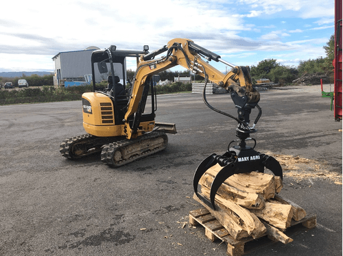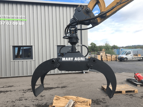 Pour les applications plus complexes, nous proposons le grappin coupeur abatteur pendulaire avec TILT, offrant un diamètre de coupe maximal de 500 mm et une force de 1275 daN, spécialement conçu pour les pelles ou grues, permettant une flexibilité et une polyvalence accrues sur le terrain.