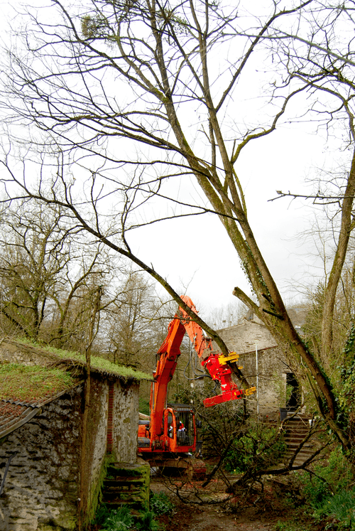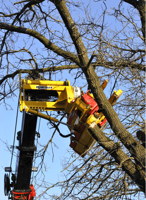 Sur pelle ou télescopique, grappin coupeur tête d'abatage.