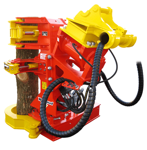 Sur pelle hydraulique de 13 à 25 tonnes selon modèle, avec un diamètre de coupe de 310 mm et 400 mm. Puissance de coupe jusqu'à 60 tonnes. Sécurité avec les pinces supérieures hautes qui assure un maintien de l'arbre après la coupe et lors du transport du bois.