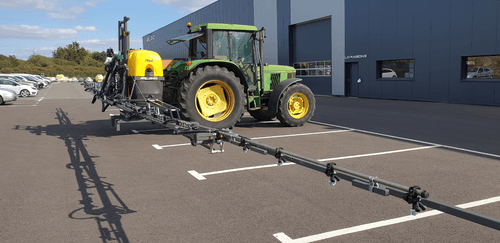 -ACS (Rampe acier à repliage hydraulique à la verticale) : Largeur de travail 15 ou 18 m. Cadre central avec suspension mécanique
