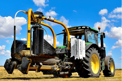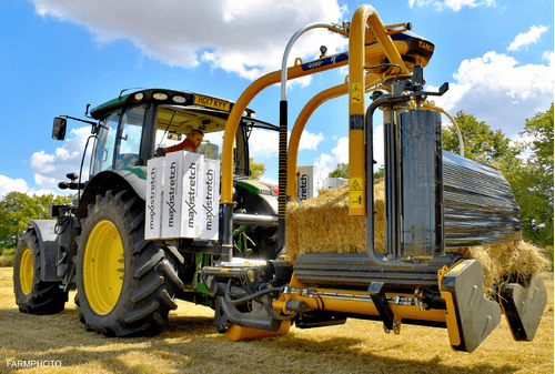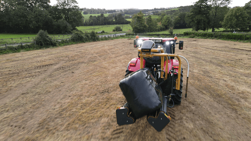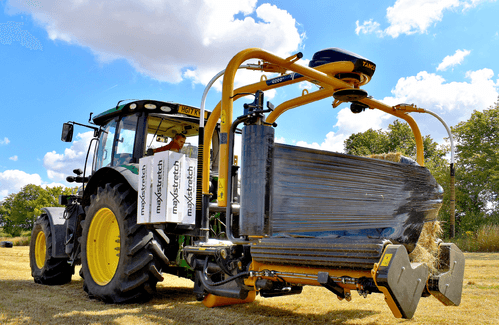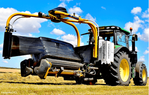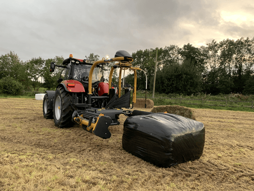 Bras de chargement, dérouleur 750mm, compte tours, kit de basculement de la balle et système automatique.