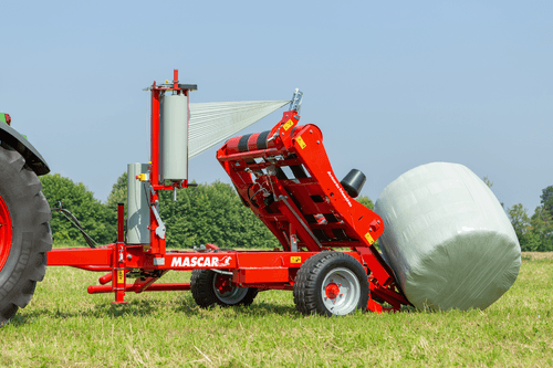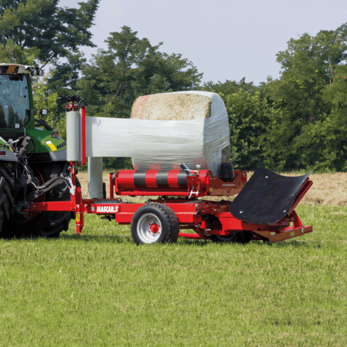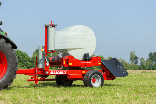 Bras de chargement, dérouleur 750mm, compte tours, kit de basculement de la balle et système automatique.