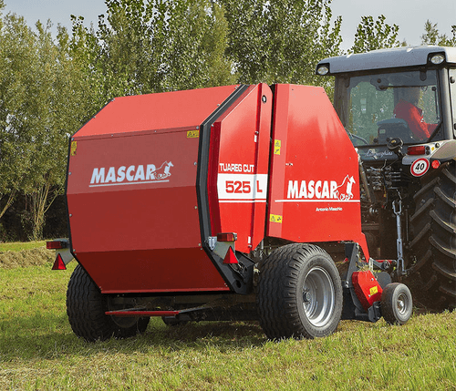 Presse à chambre fixe chaînes barrettes. Ø 1,20 m. Ameneur alternatif. Pick up largeur 2 m. Lubrification automatique des chaînes. Serrage hydraulique de la balle. Boîtier de contrôle électrique. Liage filet. Roues 400/60-15,5. Cardan homocinétique.