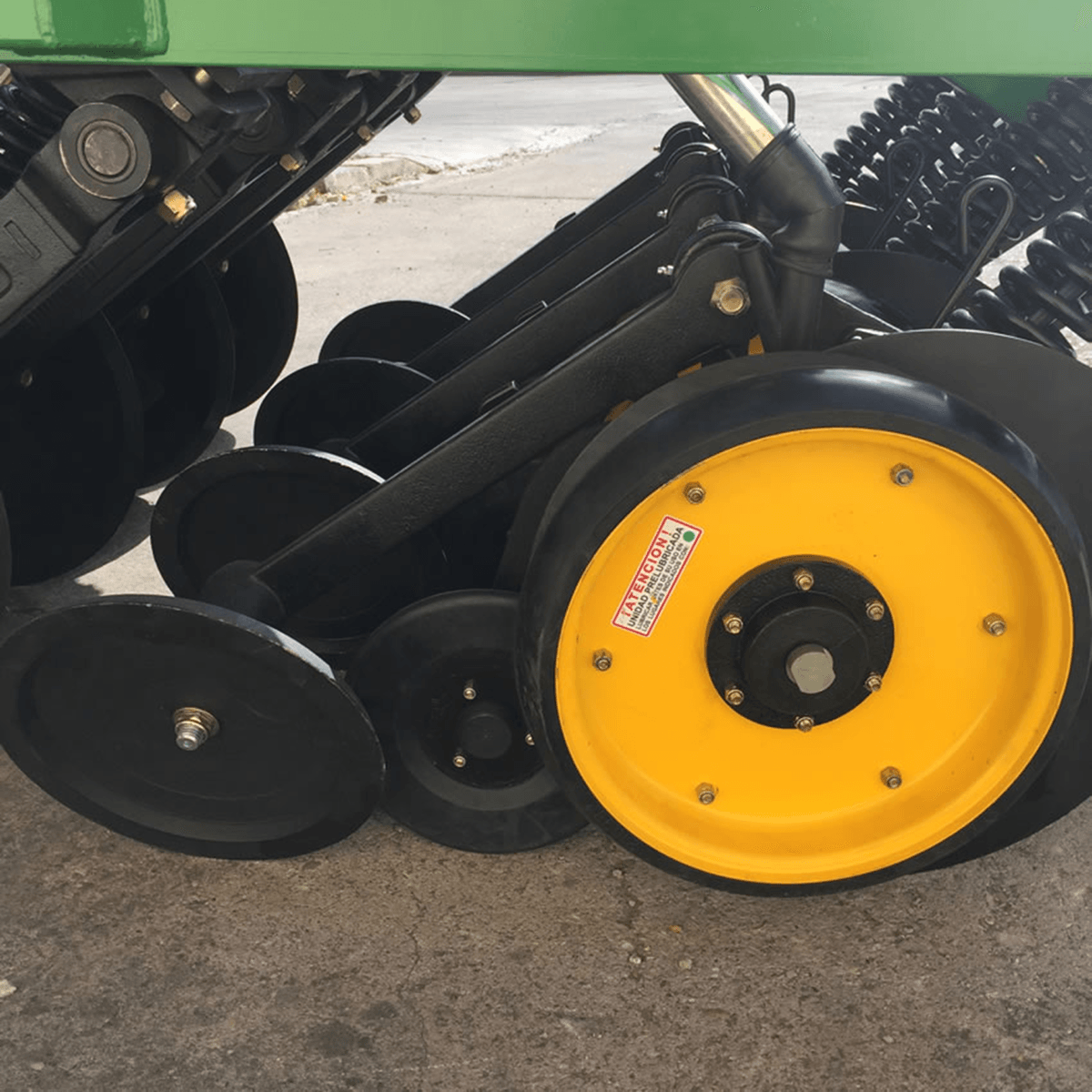 Distribution pneumatique avec doseur double cannelures toutes graines, dents fines 12mm carbure de tungstène, résistance 160kg, pour semis direct, TCS ou sur sol préparé, pour une précision de semis, une grande rapidité de chantier et d'économie d'implantation.