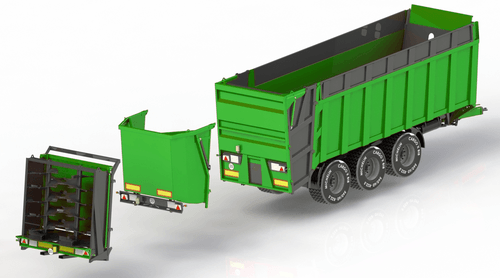 Garantie une vidange rapide et en toute sécurité, volume de 35 à 60m3, caisse et châssis galvanisés, flèche à suspension hydraulique, train roulant en suspension hydraulique, barre anti-encastrement automatique.