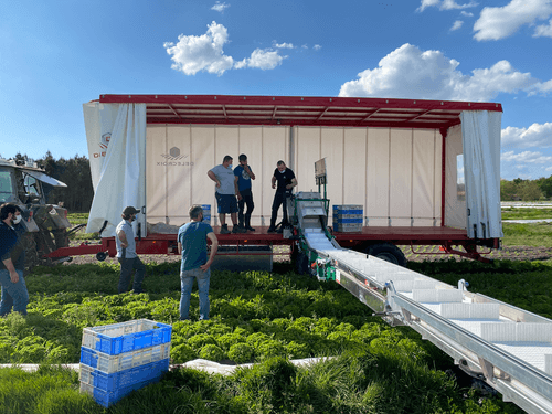 Remorques légumières bâchées et pré-équipées (3 essieux fixes enjambeurs, flèche et béquille hydraulique, barres latérales marchepied), homologuées route, pneus 500/45-22.5, de 7,40 à 12 m de plateau, PTAC 20 T, adaptées au besoin du récoltant et spécialement conçues pour accueillir un tapis de récolte. Nous vous offrons une gamme de remorques agricoles robustes et fonctionnelles avec un large choix d’options.