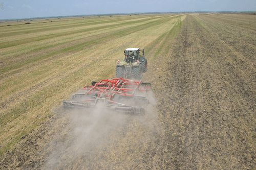 Il permet en un seul passage de déchaumer, décompacter, mulcher et ré-appuyer grâce à une combinaison dents et disques.