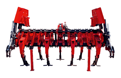 Largeur de 2,50 à 5 m et de 5 à 11 dents. 2 rangées de dents épaisseur 35 mm avec sécurité boulon ou non stop hydraulique. Double rouleau hérisson.