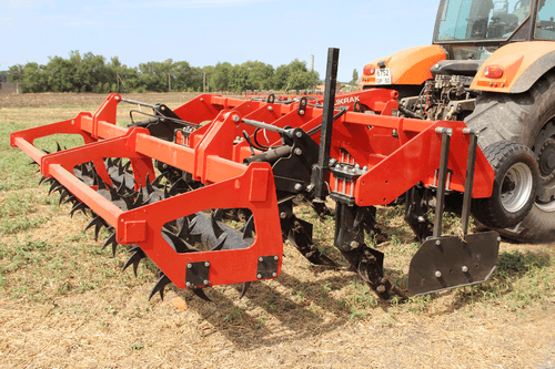 * HELIOS CRACKER de 2,5 à 5 m de large machine la plus adaptée pour ameublir sur toute la profondeur de travail. 2 types de sécurité suivant les sols, non stop hydraulique ou sécurité boulon.