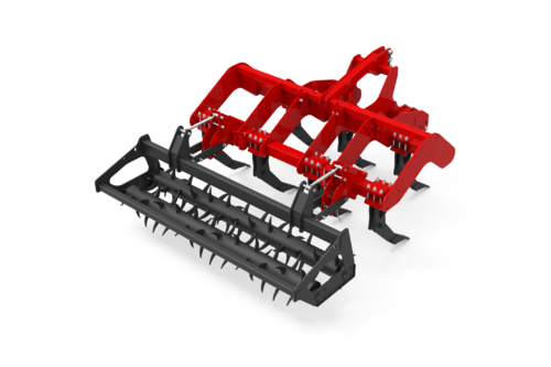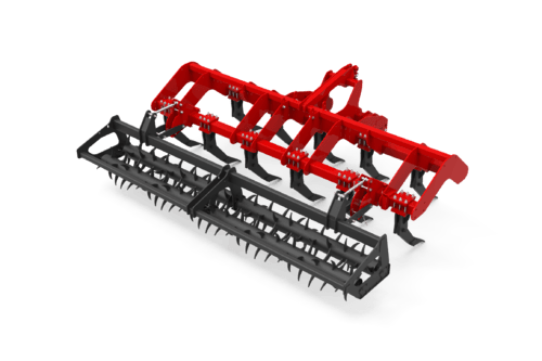 Largeur de 2,50 à 5 m et de 5 à 11 dents. 2 rangées de dents épaisseur 35 mm avec sécurité boulon ou non stop hydraulique. Double rouleau hérisson.