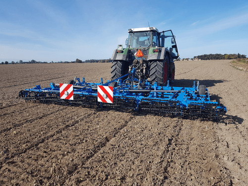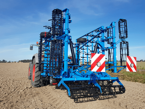 Les préparateurs de lit de semence portés TARVOS et TERREN sont des vibroculteurs légers et repliables équipés de 5 rangées de dents vibrantes. La largeur de travail va de 5,10 m à 8,3 m pour le modèle TARVOS et de 5 m à 7 m pour TERREN dont le dégagement est plus élevé pour un travail profond et pour éviter les bourrages. L’écartement entre dents de 100 mm ainsi que le double rouleau arrière d’un diamètre de 310 mm permettent d'émietter efficacement les mottes. Dégagement sous bati de 440 mm sur TARVOS et 550 mm sur TERREN.