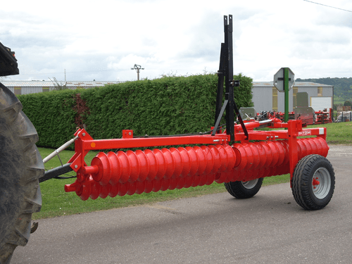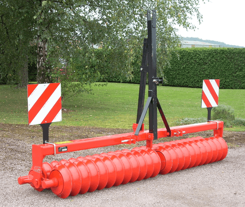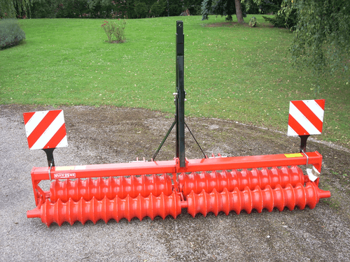 4 - RLP, rouleau porté poussé adapté aux conditions difficiles avec 2 rangées de dents vibrantes 32 x 10 mm, écartées de 16 cm et un dégagement sous châssis de 400 mm.