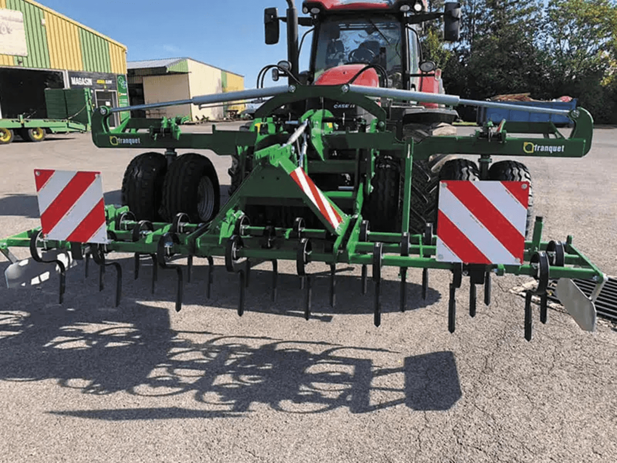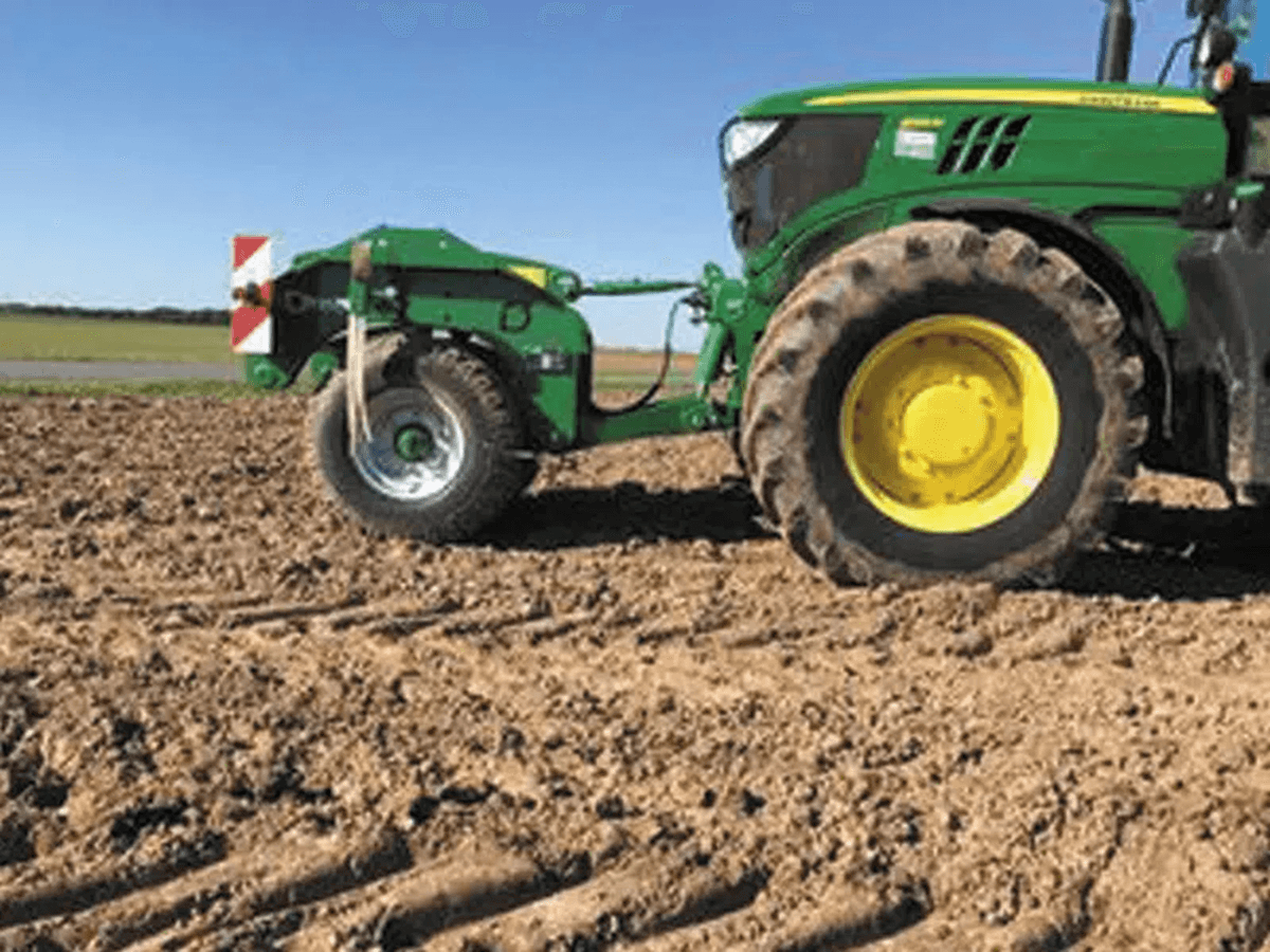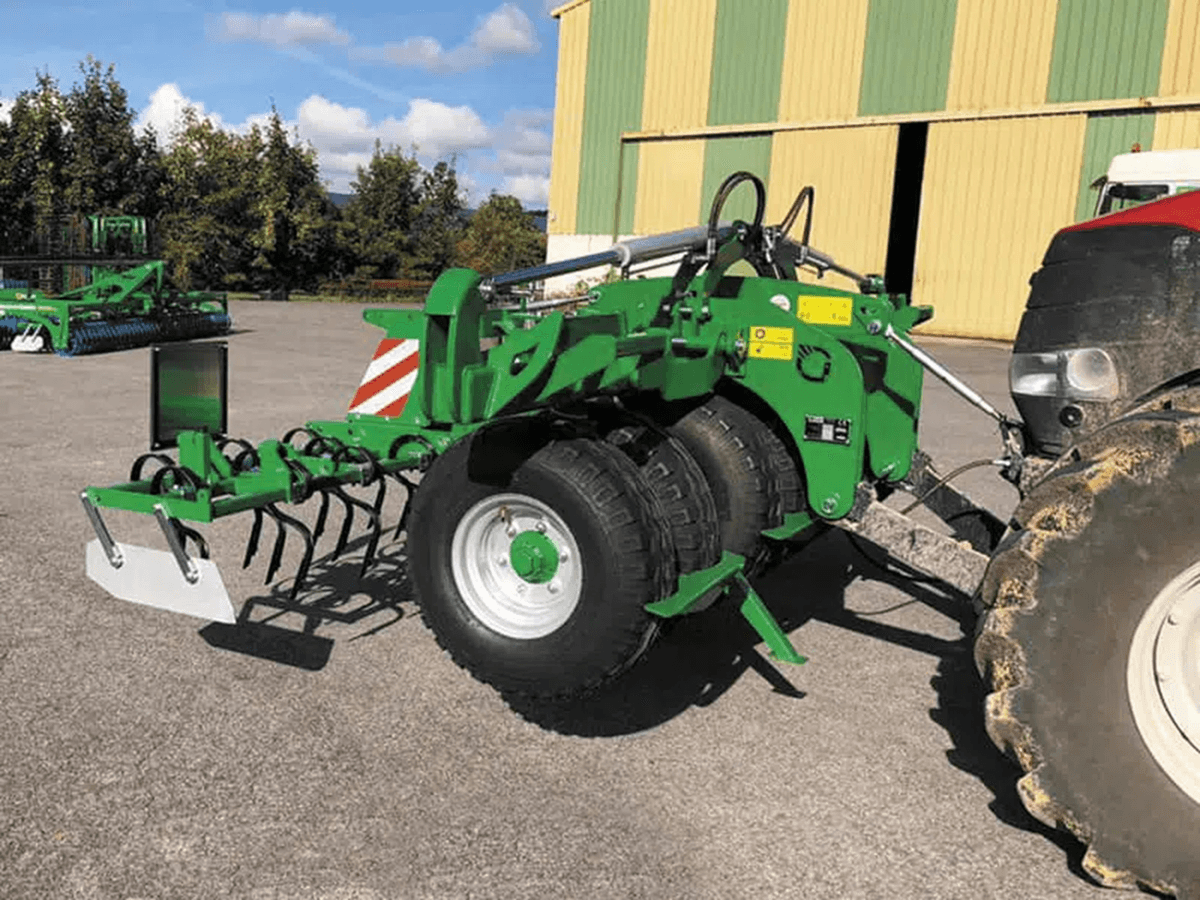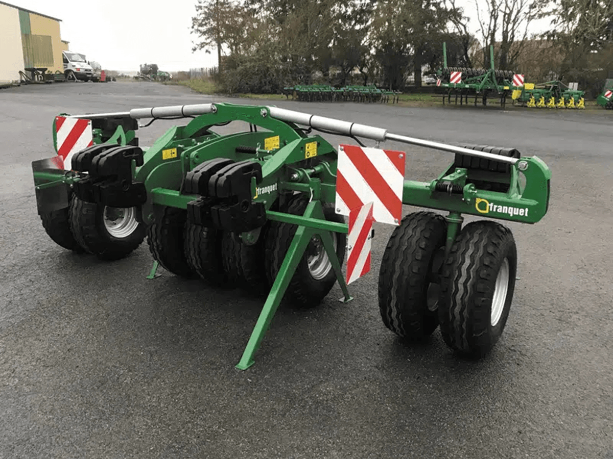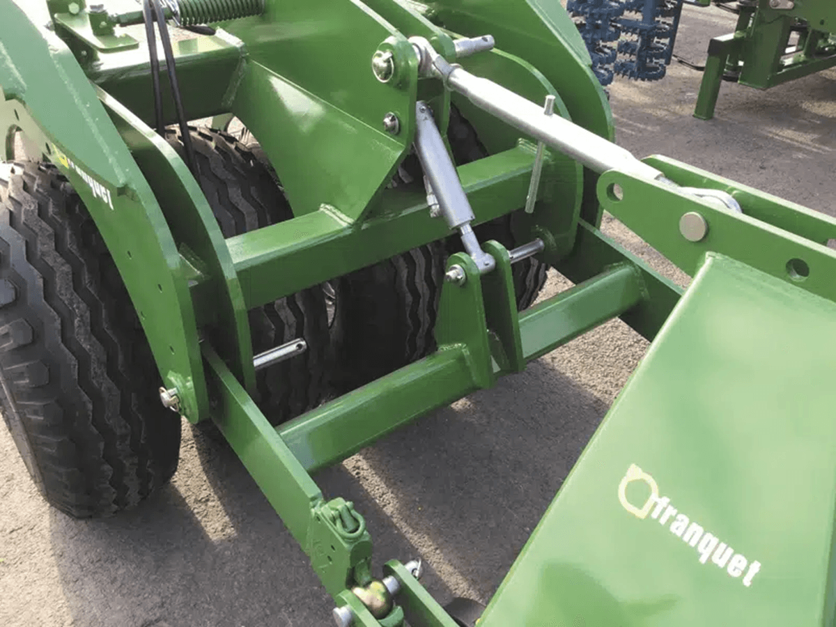 4 - RLP, rouleau porté poussé adapté aux conditions difficiles avec 2 rangées de dents vibrantes 32 x 10 mm, écartées de 16 cm et un dégagement sous châssis de 400 mm.