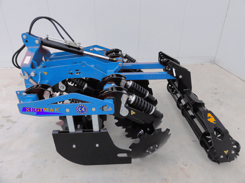 2-Déchaumeurs vigne à disque indépendant ASIN sécurité à lame, rouleau cage 320 mm de diamètre, châssis 80 x 80, profondeur de travail de 6 à 10 cm.