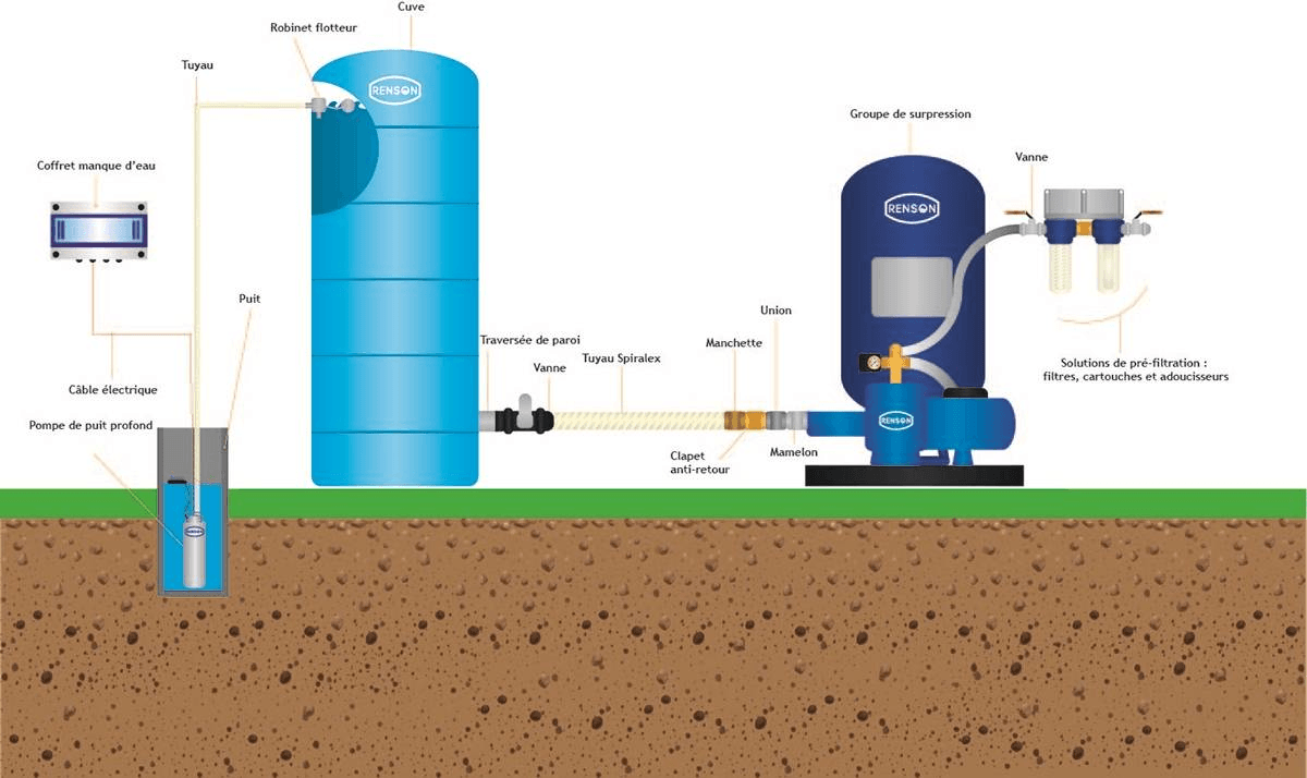 - Pompe de puit profond eaux claires