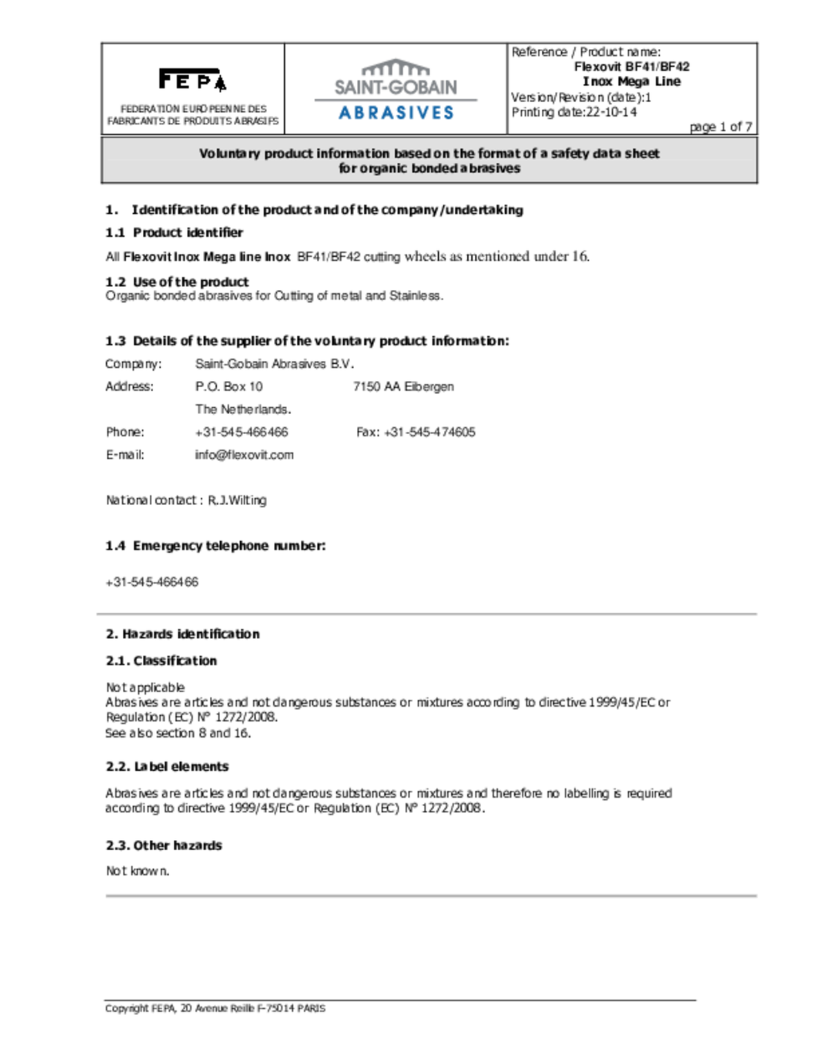 Disque à tronçonner. Moyeu plat. Acier/inox. Formule sans soufre, ni fer, ni chlore. Longue durée de vie. Coupe rapide et franche, sans brûlures, sans bavures. Spécifications : A 30S-BF41/80. Dimensions : 300x3,5x25,4 mm.
