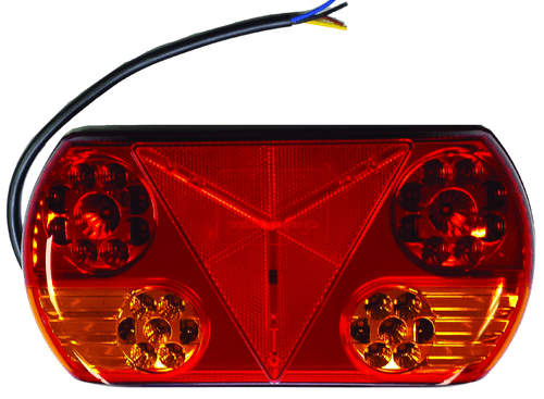 Triangle réfléchissant. 12 V. 2,5 m entre les 2 feux. Câble : 7,5 m. Aimant au dos.