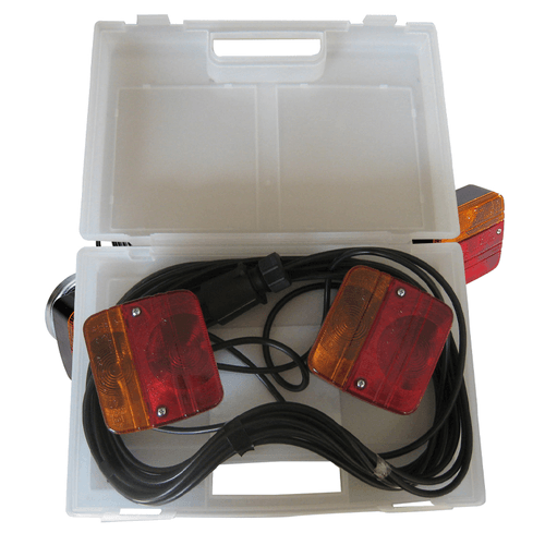 Triangle réfléchissant. 12 V. 2,5 m entre les 2 feux. Câble : 7,5 m. Aimant au dos.