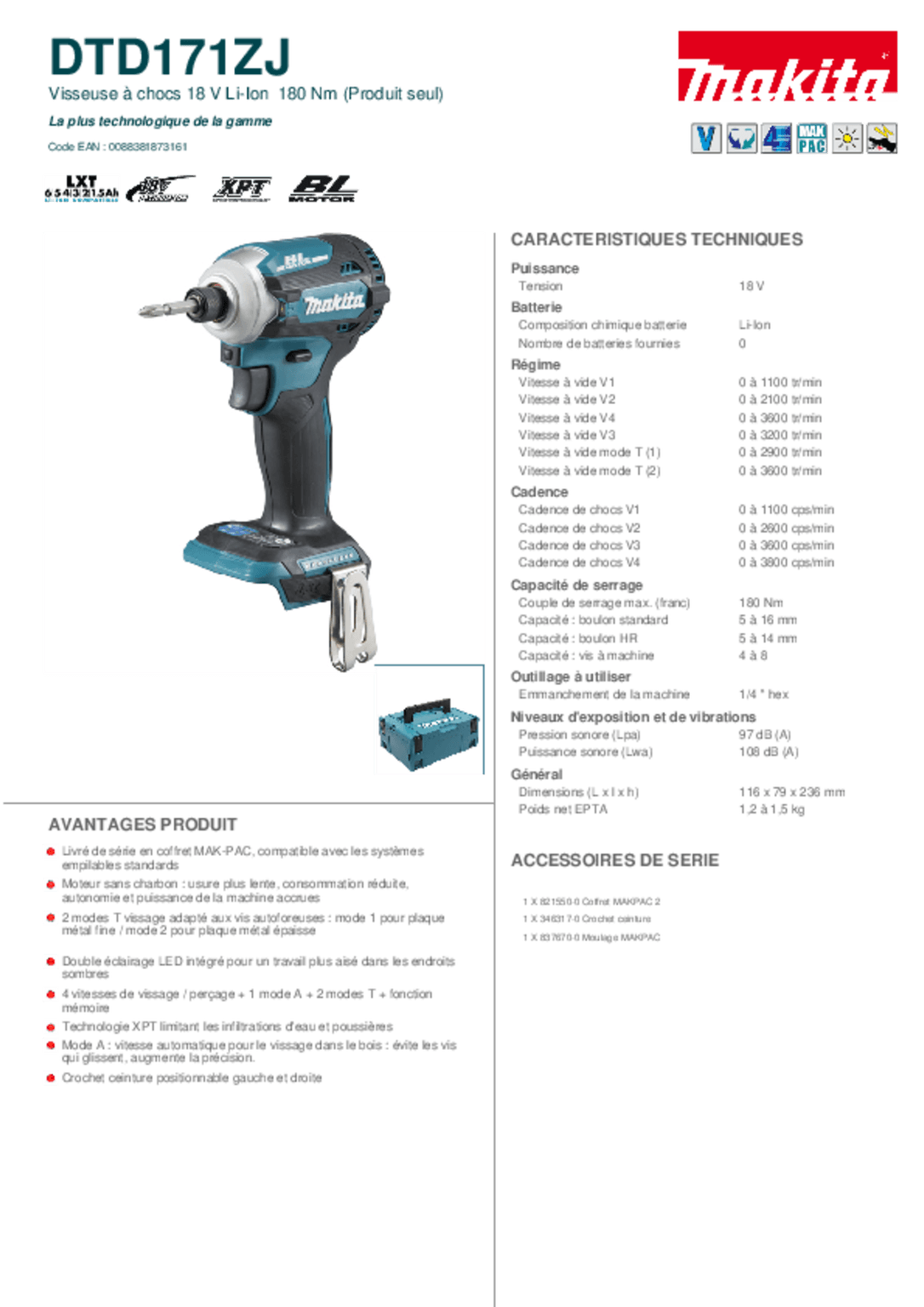Livrée sans batterie.