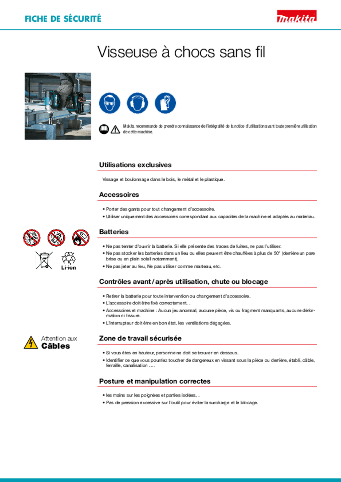 Capacité : boulon standard : 5 à 16 mm, boulon HR : 5 à 14 mm., vis à machine : 4 à 8.