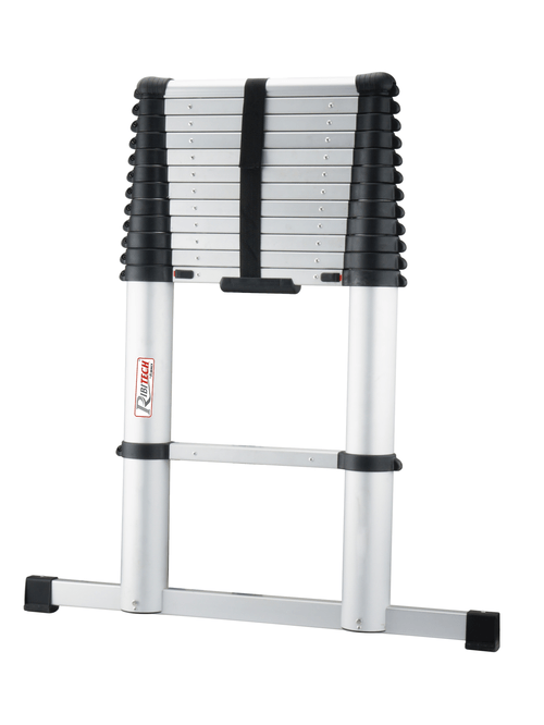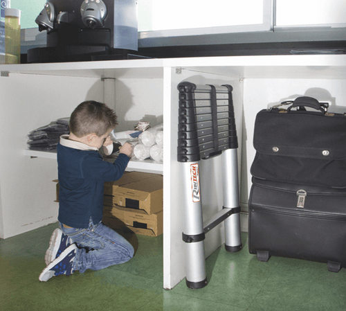 Montants cylindriques coulissants en aluminium avec verrouillage automatique de sécurité sur chaque section.
