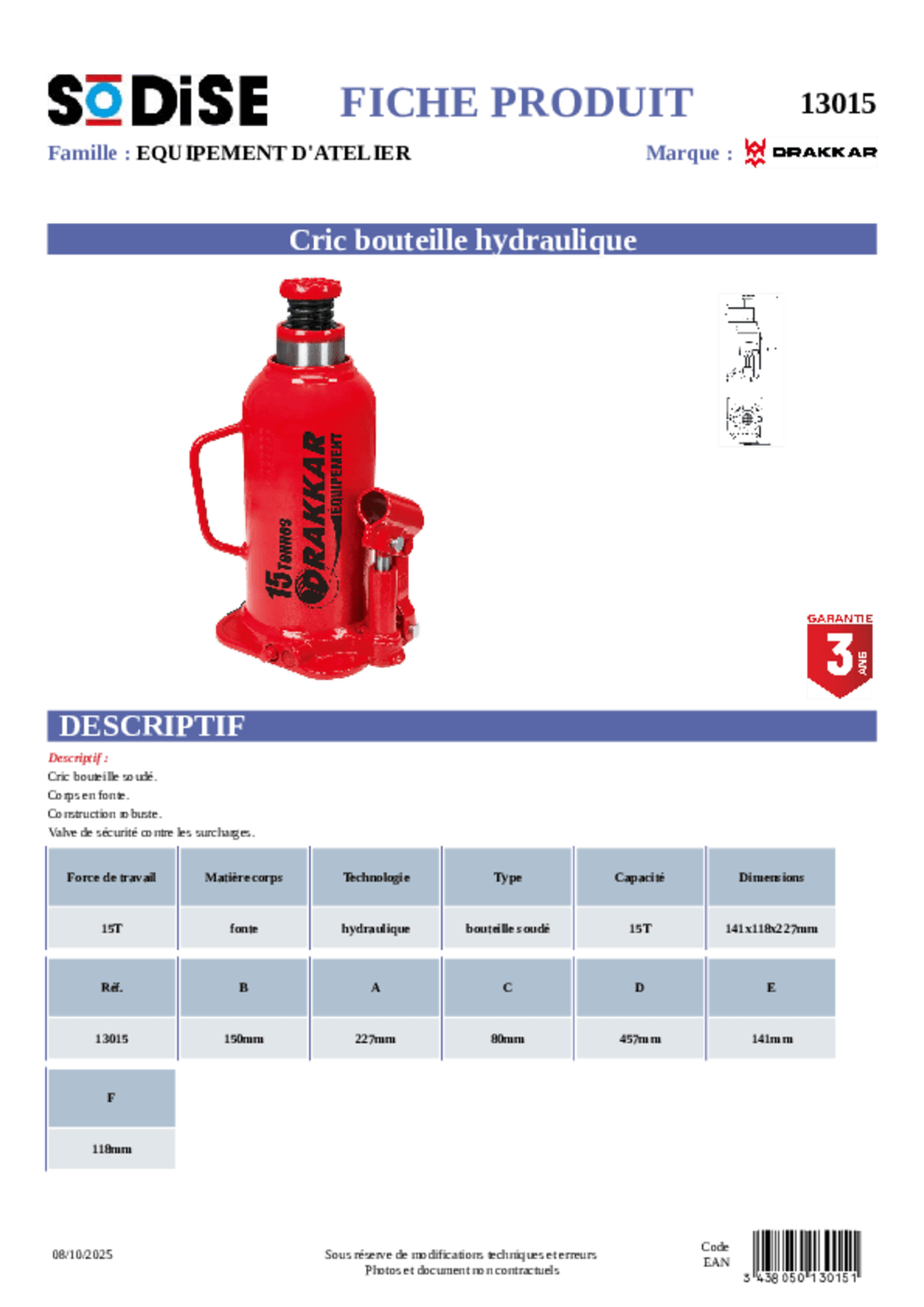 Cric hydraulique 3T.