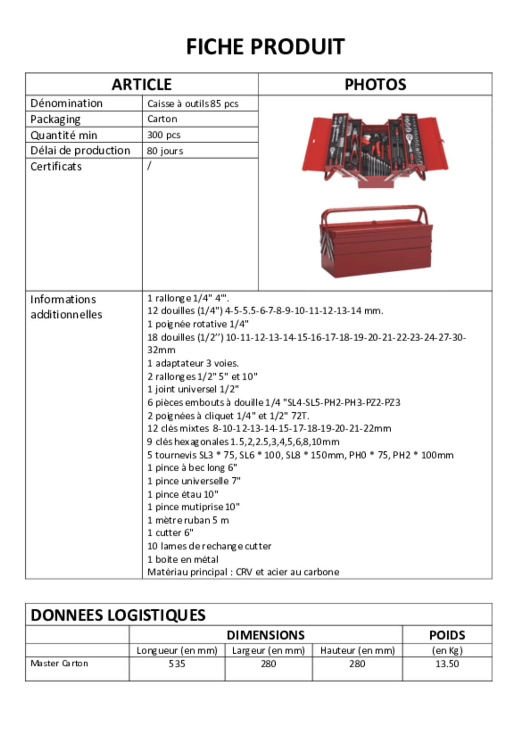 - Caisse à outils 85 pièces